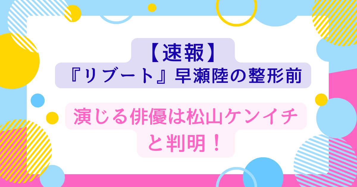 この記事では、TBS日曜劇場『リブート』・第1話放送直後の速報として、松山ケンイチさんが演じる早瀬陸(整形前)の魅力と登場シーンのポイントを解説しました!
